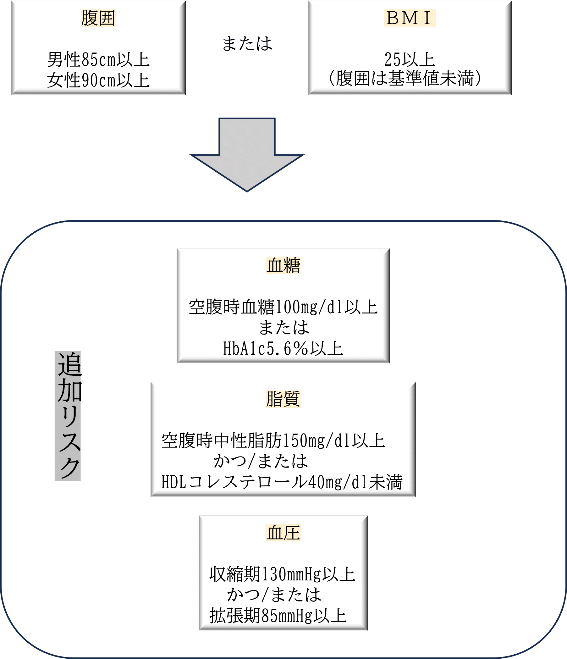 内臓肥満に加え、高血圧、脂質異常、高血糖などの動脈硬化の危険因子が2つ以上ある状態のことです。このまま放置しておくと動脈硬化が急速に進行し、心筋梗塞や脳卒中などの病気を発症 しやすくなります。
