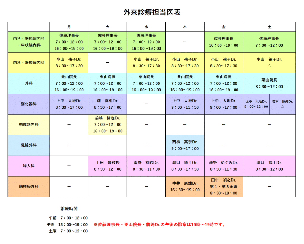 各科の診療時間はこちら
